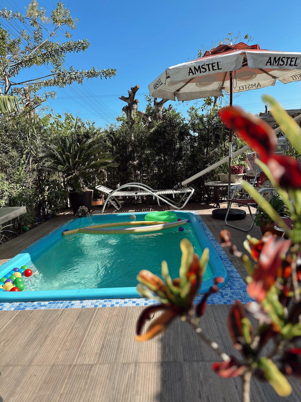 Situada a 120 metros da areia da praia, menos de 05 minutos a pé... EXCLUSIVA, somente para você !!! Venha conhecer, a verdadeira hospedagem açoriana.Todas as áreas disponíveis, são preparados para atender as necessidades de um agradável encontro FAMILIAR. Simplicidade com conforto e comodidades...local com estrutura adequada. Espaço externo: pergolado, piscina tratada... indicada para crianças e adultos. Área coberta com TV, WI-FI, redes de descanso, sofás e som ambiente.