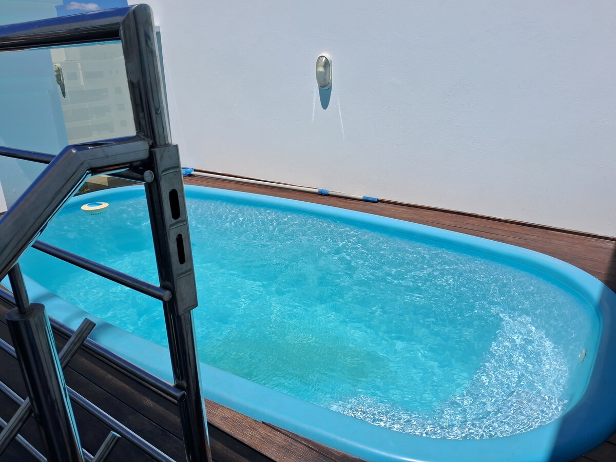 Cijeli stan 300 metara od plaže. Fleksibilan dolazak, roštilj, grijana voda, krevet na razvlačenje, pametni TV, klimatizovano okruženje (podijeljeno) i kompletna kuhinja. Prima do 4 osobe u 2 spavaće sobe s bračnim krevetom. Ima 1 natkriveni garažni prostor. Struktura zgrade pruža bazen za odrasle i djecu na krovu, igraonicu i teretanu. Obezbjeđujemo posteljinu, peškire, 4 stolice za plažu, frižider od 18 litara, roštilj i ražnjiće za roštilj.