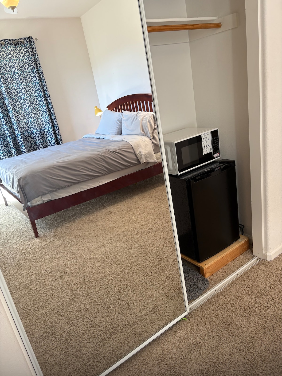Naše mirno studio utočište idealno se nalazi u mirnom području s praktičnim pristupom lokalnim bolnicama, Edwards, Lockheed i Northrop. Nalazi se pola milje od tržnog centra i restorana. Dobro opremljena čajna kuhinja: električni štednjak s jednim plamenikom, frižiderom i punim sudoperom. Udobno se odmorite u bračnom krevetu s dovoljno prostora za odlaganje. Kupatilo s WC-om osigurava vašu udobnost tokom boravka. Povezan s glavnim domom, studio održava svoju privatnost s jednim zajedničkim zidom. Zajednička mašina za pranje veša i sušilica u zajedničkoj garaži.