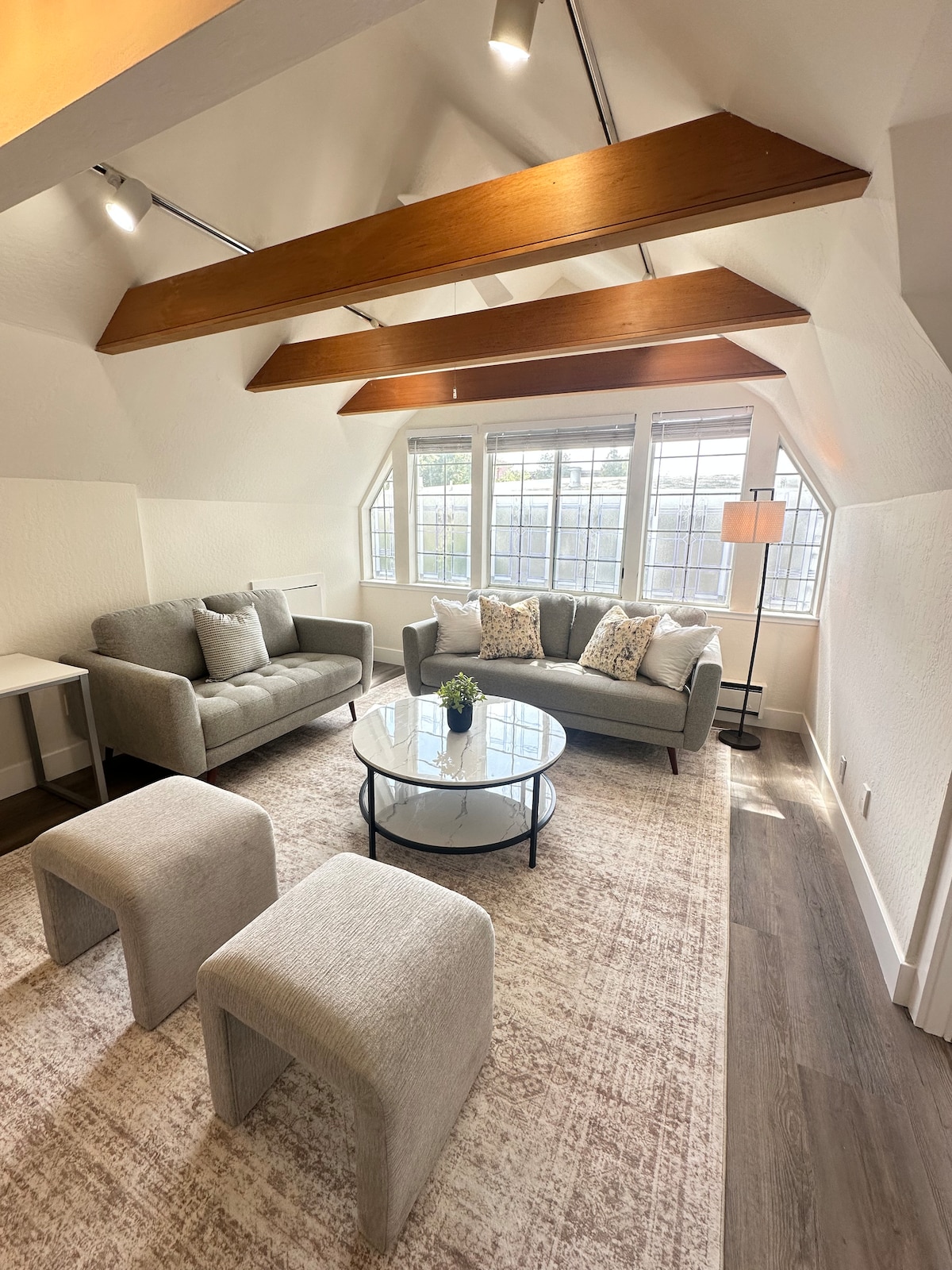 900sf u historijskom kvartu, nekoliko koraka od HP garaže. Prošetajte centrom grada kako biste večerali ili nešto pojeli u restoranu Whole Foods i sklupčajte se ispred kućnog kina. Čajna kuhinja, kupatilo, bračni krevet (širine 150-179 cm) i jedan krevet za jednu osobu i dva radna stola. Krovni prozori za svjež zrak i dnevno svjetlo.