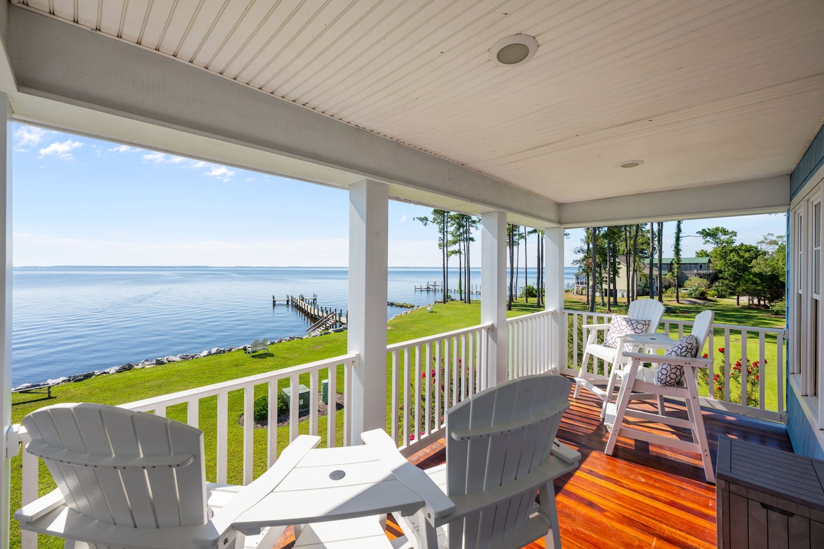 Čeka vas raj uz obalu! Ova zapanjujuća kuća s 3 spavaće sobe na 3 hektara nudi panoramski pogled na jug i rijeku Neuse. Uživajte u prostranim palubama, privatnom pristaništu i pristupu ICWW-u. Riba, kajak ili brod do mile volje. Opustite se u lijepo uređenom enterijeru s kraljevskim apartmanima s privatnim pristupom trijemu, potkrovljem s bilijarom i potpuno opremljenom kuhinjom. Istražite obližnji Beaufort i Morehead City sa svojim trgovinama, historijskim znamenitostima i divljim konjima. Za 7 osoba.
