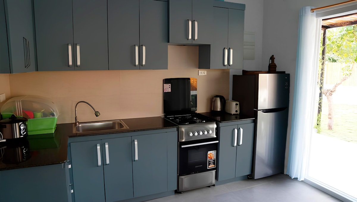 Pobjegnite u našu modernu kuću s dvije spavaće sobe na obali, izgrađenu 2018. godine. Vaše privatno utočište je osmišljeno tako da bude svijetlo i prozračno, s velikim prozorima koji ispunjavaju prostor prirodnim svjetlom i nude zadivljujući pogled na okean direktno s vašeg balkona. Smještaj ima udobne spavaće sobe s vlastitim klima uređajima i kompletno opremljenim kupatilima. Prostrani dnevni boravak i trpezarija imaju namjenski klima uređaj. Potpuno opremljena kuhinja uključuje plinski šporet, pribor i besplatnu vodu za piće, što olakšava pripremu vlastitih obroka.