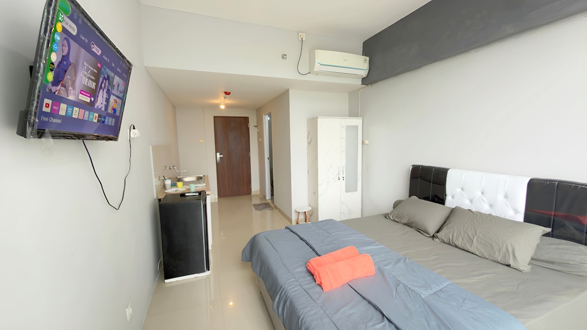 Uživajte u elegantnom doživljaju u smještaju koji se nalazi u centru grada u blizini objekata za zabavu, kupovinu i mjesta za rekreaciju Soba sa sadržajima - 1 bračni krevet (180x200) - Wi-Fi + Netflix - Bojler - Frižider - Aparat za vodu - Klima uređaj - TV - Toaletni stočić • Fen za kosu - Gvožđe. - Kuhinjski pribor i pribor za kuhanje Sadržaji u objektu - Bazen -GY mjesto - Kafeterija -Mini Market * Indomaret * 24 sata Cirkel K - Parking mjesto (uz naplatu) - Praonica veša Zabava i kupovina - Trgovački centar Aeon - ice bsd - The breeze bsd - Q Big Mall