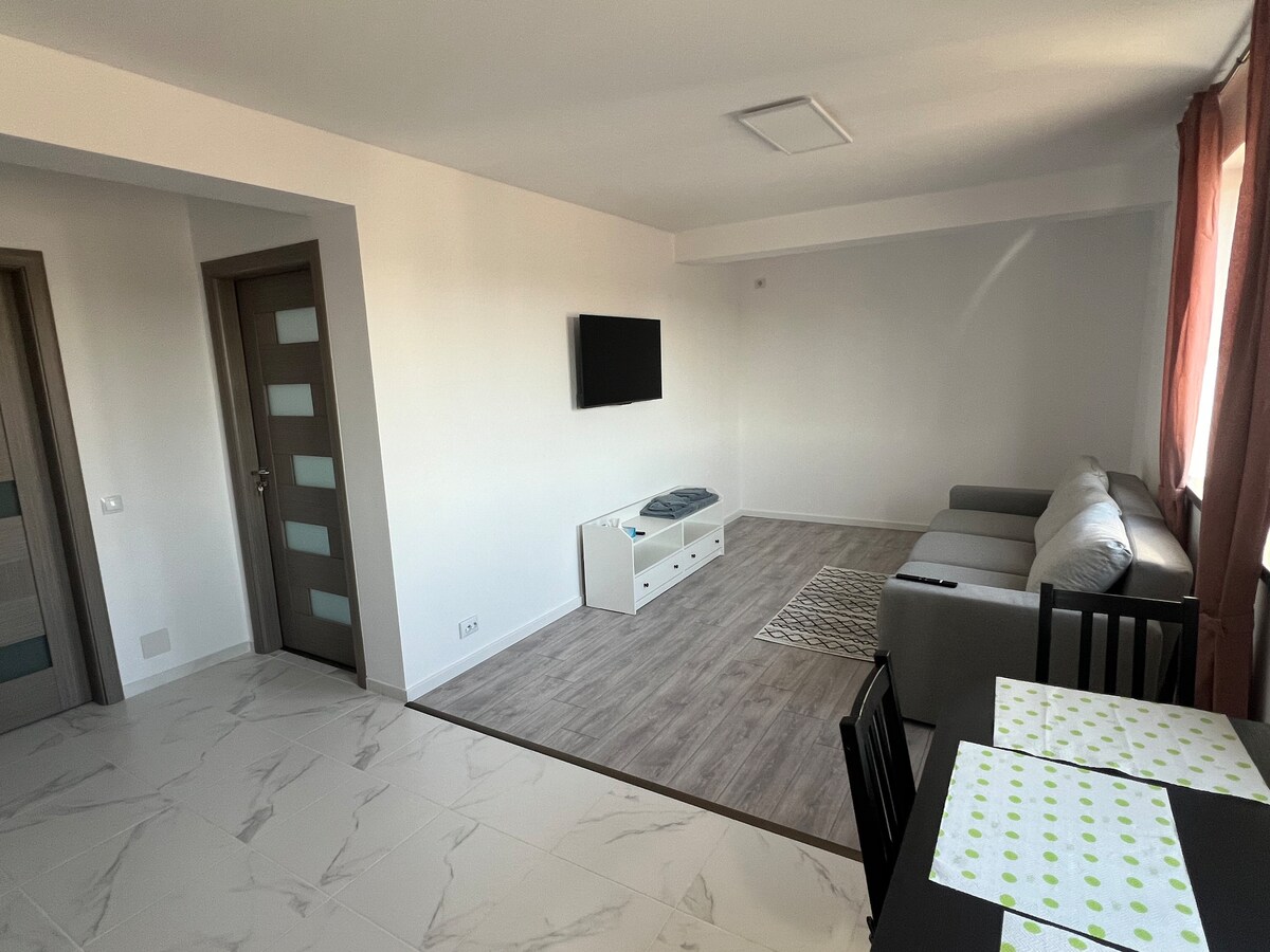 Uživajte u ovom prostranom dvosobnom i terasi u potpuno novom kompleksu. Samo 15 minuta vožnje metroom do živahnog centra grada Bukurešta i Starog grada. - Sofa+ - Ogromna privatna terasa - Prostor za igru za djecu - Mašina za pranje veša i sušilica - Superbrzi Wi-Fi - Smart TV s Netflixom - Pametno centralno grijanje - klima-uređaj u SVIM SOBAMA - Osigurajte podzemni parking - Visoko osiguran kompleks zgrade s ogradom. Nismo novi na Airbnbu. Pogledajte više od 90 recenzija Andreija o ugošćavanju gostiju u Ujedinjenom Kraljevstvu 🇬🇧