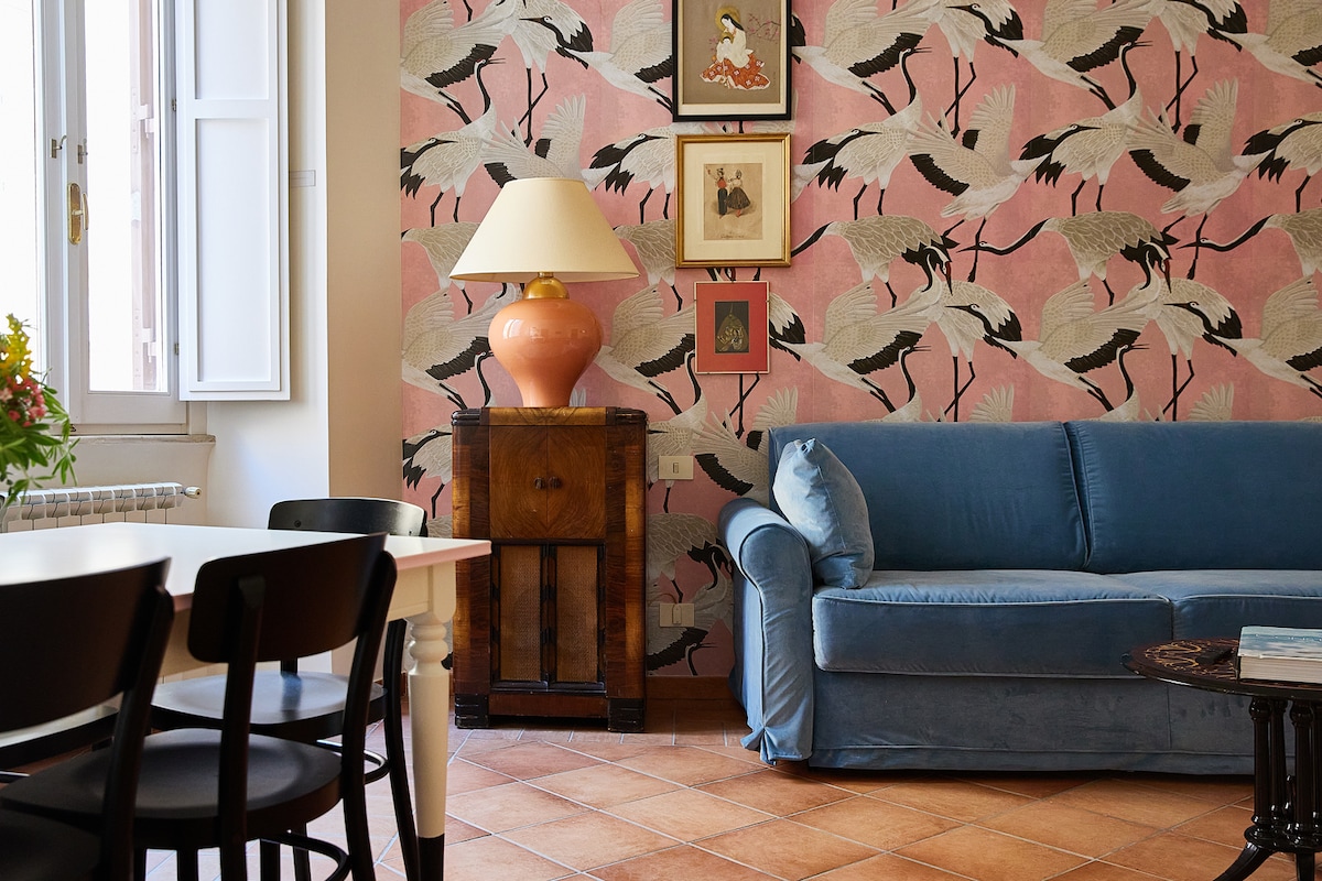 Unutar historijske zgrade, između trgovačkih ulica i popularnih restorana, na pola puta između Panteona i fontane Trevi, ovaj stan ćete pronaći s profinjenim stilom i pomalo retro ukusom. U kući se nalazi bračni krevet, kauč na razvlačenje (s dodatnim krevetom na razvlačenje), kupatilo i potpuno opremljena kuhinja. Pravi dragulj u srcu glavnog grada.