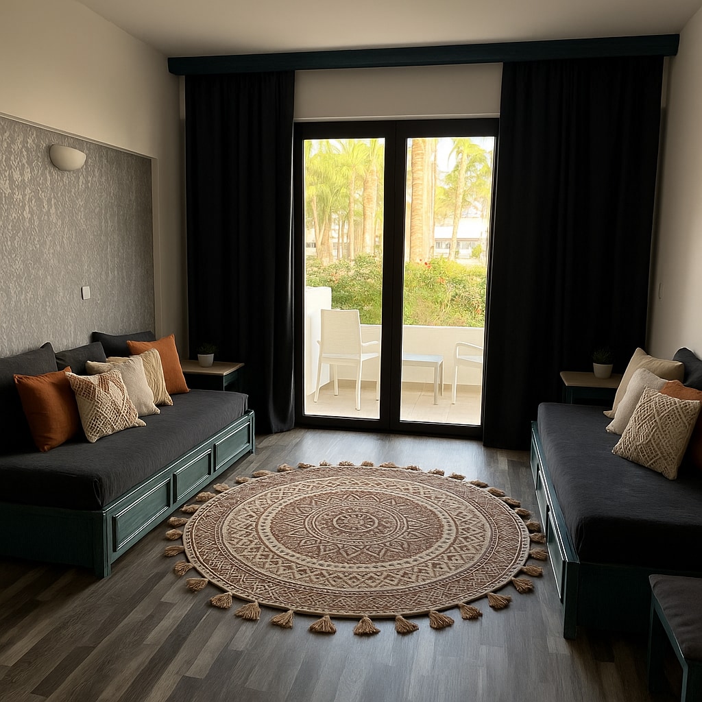 Spacious studio just minutes from the sea and next to Sklavenitis supermarket. Located in a central complex with an outdoor swimming pool with jacuzzi and a child friendly pool, gym facilities, restaurant, and coin operated launderette. Our studio is set within the older but vibrant Basilica Gardens complex — full of character, charm, and surrounded by lush gardens. While the complex itself is not new, its unbeatable location and welcoming atmosphere make it the perfect base for exploring Paphos