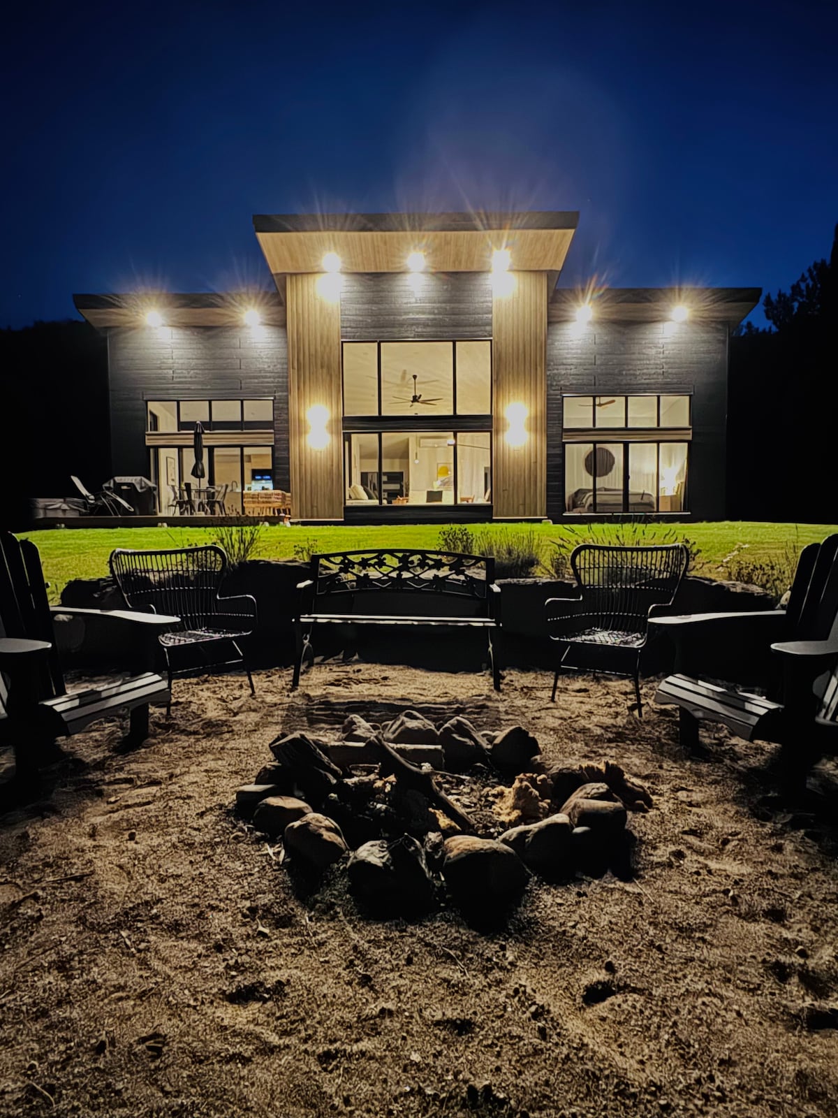Escape to ROCKHaüs, a stunning modern chalet in the Laurentian Mountains near Mont Tremblant. This 3-bedroom architectural gem comfortably fits 8 guests. It features a panoramic glass dome sauna, a built-in hot tub, and breathtaking mountain views. Perfect for a luxurious retreat, it offers a unique blend of contemporary design and natural serenity with a cozy Scandinavian fireplace and expansive outdoor deck. Experience an unforgettable getaway with high-end amenities and private lake access.