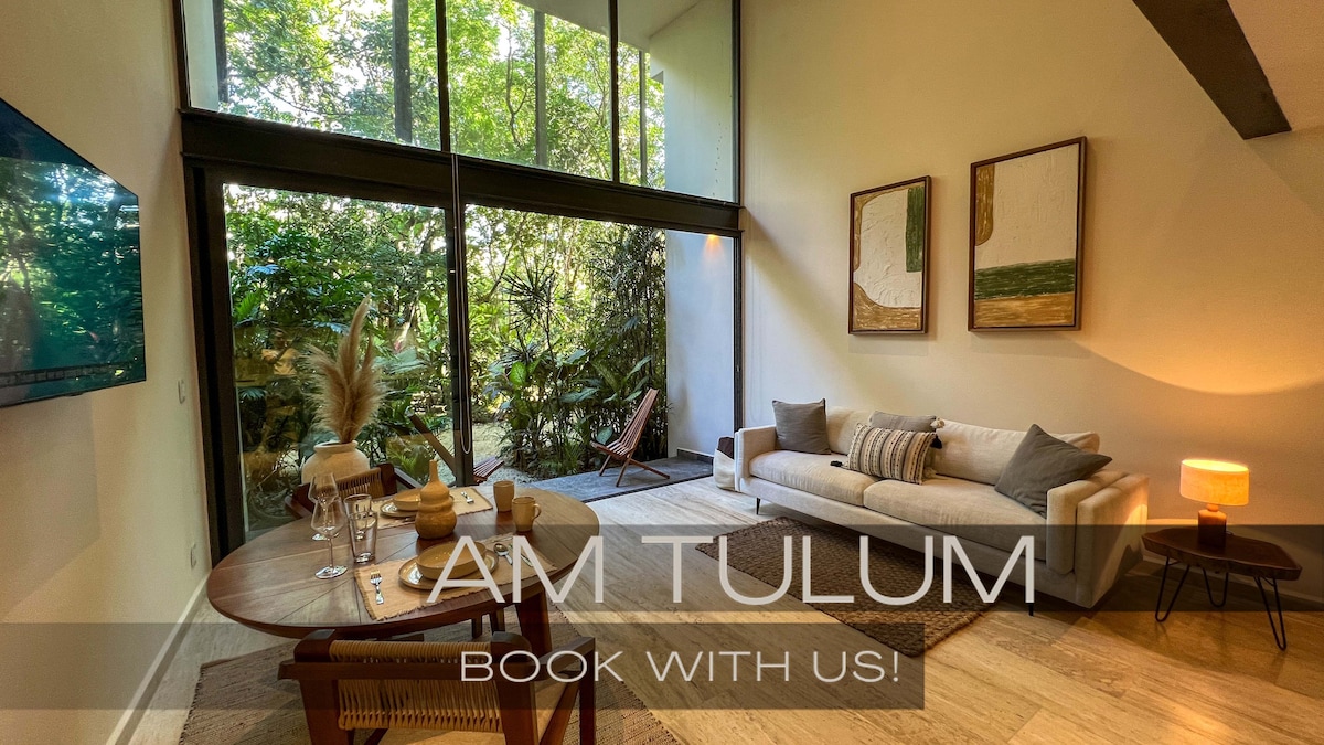 Stunning loft apartment with direct access to pools, near Tulum center and only a few minutes from the spectacular beach and Tulum beach clubs. Enjoy several stunning swimming pools, a roof top pool, sun beds, nice gym, 24/7 staff, strong A/C, elevator, fast Wifi (400 Mbps), blackout curtains, 55" smart TV, a fully equipped kitchen and private parking. Experience outdoor dining or just drinks with beautiful panoramic views at the roof top restaurant