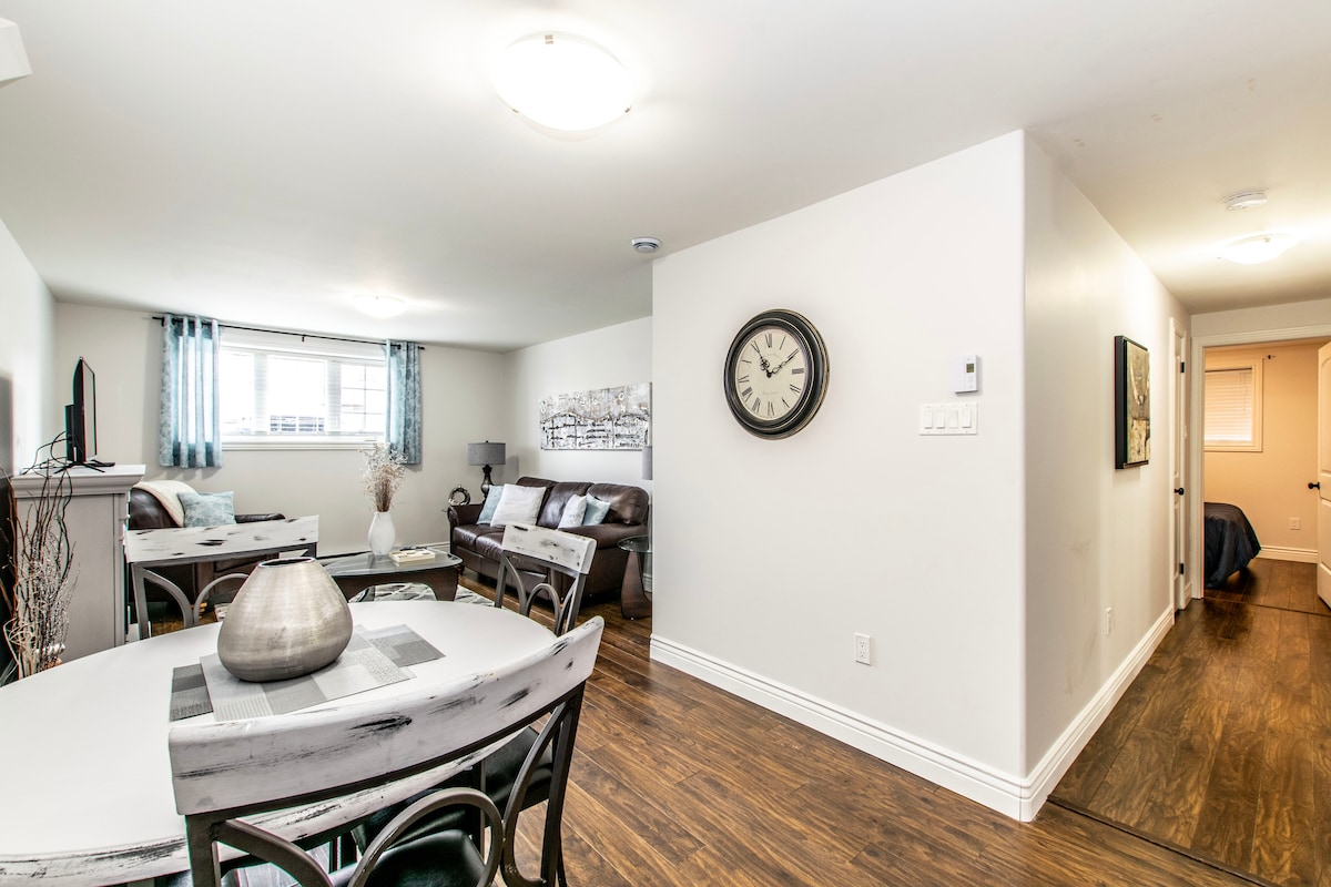 Prekrasan,svijetao,moderan,potpuno klimatizovan dvosobni stan u podrumu koji se nalazi na mirnoj terasi Kenmount 's St. John' s. Sadržaji uključuju bravu bez ključa, terasu s roštiljem i stolom i stolicama,potpuno opremljenu kuhinju,posteljinu,peškire, fen za kosu,peglu,satelitsku TV,Wi-Fi,mašinu za pranje i sušenje veša,besplatan privatni parking. Smješten u roku od 5 do 10 minuta do sadržaja,uključujući Walmart, Costco, Avalon trgovački centar, zdravstvenu naučnu bolnici, Sobeys supermarket, finansijske institucije i mnoge restorane.
