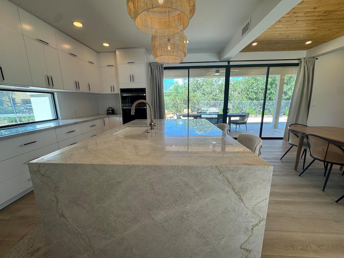 Smješten u srcu Scottsdalea, ovaj luksuzni smještaj je savršeno mjesto za odmor za opuštanje. Bilo da se vozite biciklom Peloton, sjedite na stolici za masažu, izležavate se pored bazena s morskom vodom, igrate golf na zelenilu ili pravite svježe iscijeđenu limunadu od stabala citrusa, ovaj dom čini provođenje vremena zajedno zabavnim! Oaza u dvorištu, dobro opremljena kuhinja, prostorija za vježbanje i boravak u zatvorenom/na otvorenom čine ovaj smještaj idealnim za odmor s prijateljima i porodicom.