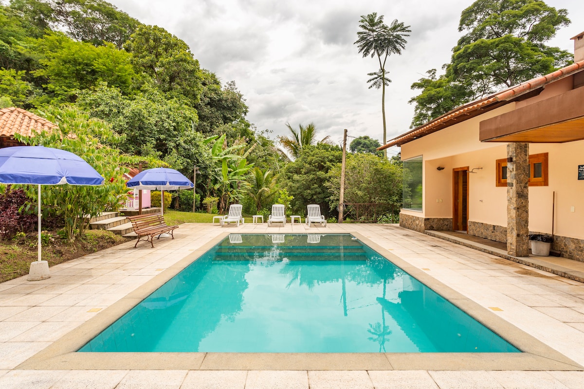 Zabavite se s cijelom porodicom u ovom elegantnom smještaju. Pogodno za djecu! Bazen, parna sauna, dva gurmanska područja, dva roštilja, Wi-Fi posvuda, pet udobnih apartmana, klima uređaj i televizori u sobama, fudbalski teren, solarna energija, arteški bunar dubine stotinu metara, emporium proizvoda, jaja iz slobodnog uzgoja, med, cachaça, organski povrtnjak.