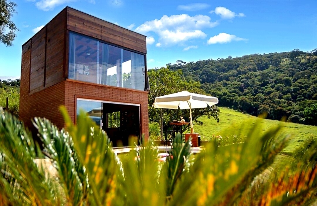 Desconecte-se nesse Chalé Contêiner nas Montanhas de Gonçalves em um terreno de 22 mil metros quadrados no ponto mais alto do bairro. Com um design moderno e acolhedor, este refúgio oferece o equilíbrio perfeito entre conforto e natureza. Desperte seu espírito aventureiro nesta cabana encantadora. Relaxe ao lado da fogueira enquanto o fogo cria uma atmosfera acolhedora. Sinta a brisa da montanha enquanto observa o espetáculo mágico do pôr do sol direto da sua varanda privativa