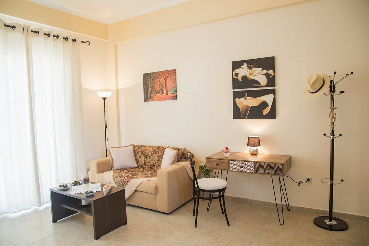Naš potpuno renoviran stan u modernom stilu sa svojim malim dvorištem smješten je na jednoj od najljepših plaža na ostrvu Krf. Idealan je za parove koji traže odličan provod u sjajnom području. Potpuno opremljena moderna otvorena kuhinja vam omogućava da kuhate i uživate u obrocima s pogledom na more. Udoban kauč, veliki pametni ravni ekran i kablovska TV sa satelitskom televizijom, potpuno klima uređaj, kauč, Cocomat bračni krevet. Kupatilo u tuš kabini. U stanu je instaliran i Starling satelitski Wi-Fi!