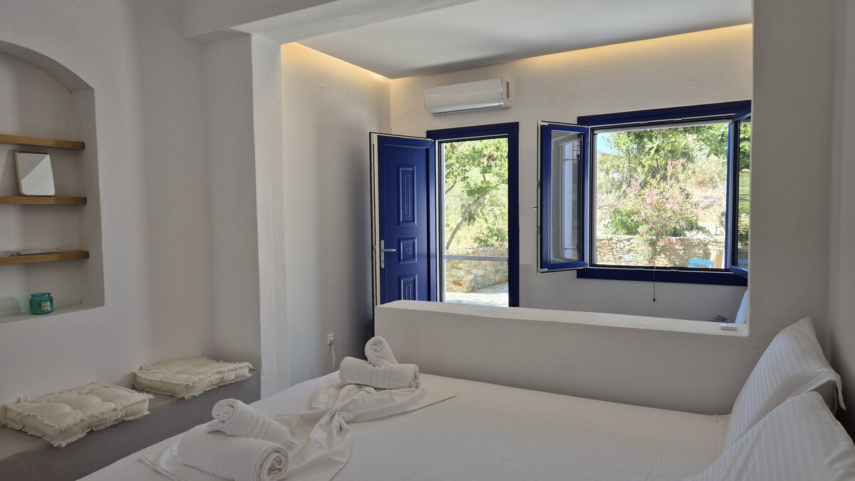 Prekrasna teiotiko moderna kuća s prekrasnim pogledom i zalaskom sunca, mirna i udobna s pažljivo osmišljenim ukrasima. Definitivno ćete uživati u njemu i lijepo se provesti na našem otoku. Prekrasna kikladska seoska kuća s modernim elementima i ukrasima koji poštuju grčku otočnu arhitekturu. Kuća s mnogo svjetla, lijepim pogledom na horizont, zalazak sunca i more, vrlo mirna, idealna za lijep grčki odmor. Također, vrlo blizu ostrva, život u glavnoj prodavnici i 12 minuta hoda do najbliže plaže.