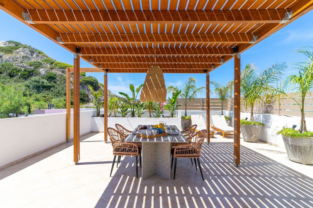 Luksuzna vila s bazenom nalazi se na rezidencijalnom dijelu plaže Ialysos (udaljenom ±500 m) i pruža idealan prolaz za porodice, parove i grupe (do 6 - ili 7 u posebnim slučajevima - ljudi), koji traže jedinstven i opuštajući odmor, dok istovremeno žele biti u blizini svega, jer se povoljno nalazi u neposrednoj blizini Grada Rodosa. Zahvaljujući svojoj lokaciji, vila nudi privatnost i opuštanje uz bazen, dok istovremeno možete biti u centru Rodosa za samo 15 minuta.
