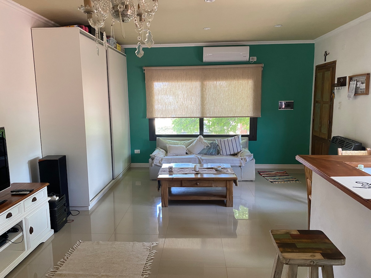 Escapate a San Antonio de Areco y viví una estadía pensada para bajar un cambio desde el primer momento. Este espacio luminoso, moderno y cálido combina comodidad y ubicación ideal para que disfrutes el pueblo caminando, sin preocuparte por el auto. A solo cuatro cuadras de la plaza principal y a dos del río Areco, vas a estar cerca de los mejores restaurantes, cafés y rincones tradicionales, mientras mantenés la tranquilidad perfecta para descansar.
