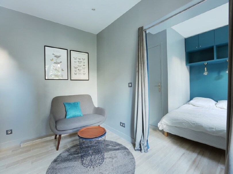 Bivša pariška stolarija koja se nalazi u pozadini mirnog dvorišta, potpuno renovirana. Željeli smo zadržati dušu ovog mjesta. Zato smo tamo držali originalne cigle, štoviše, kao što možete vidjeti, ukras je namjerno napravljen od sirovina kako bismo se prisjetili zanatske prošlosti mjesta. Nadamo se da ćete se osjećati dobro zbog toga.