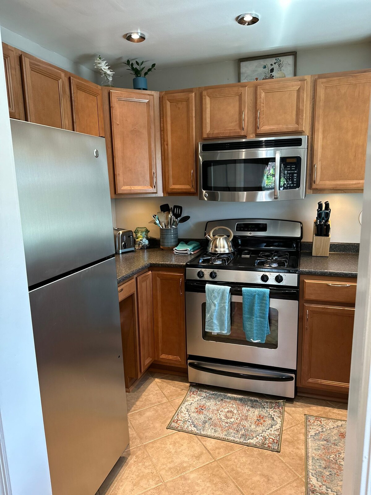 Odlično za samce, parove ili do 4 osobe Čist, privatni ulaz na bočnoj terasi s korištenjem terase i roštilja. AŽURIRANI KOMPLETNI KUHINJSKI lonci, tave, mikrovalna pećnica, roštilj u zatvorenom prostoru, stanica za kafu i čaj, pribor za jelo, pozadinska voda itd. Udoban krevet! Nevjerovatan pritisak vode u tuš kabini. Dovoljno prostora
