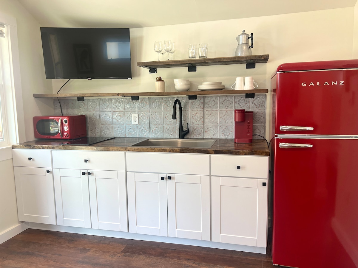NOVOIZGRAĐENA jedinica od 1.100 kvadratnih metara (iznad naše odvojene garaže) Potpuno namještene spavaće sobe sa bračnim krevetom i TV-om sa premium kanalima Udoban dnevni boravak s prekrasnim kaminom, pametnim TV-om s velikim ekranom i premium kanalima Potpuno opremljeno sa gurmanskom kuhinjom. Opremljen alatima koji su vam potrebni za pripremu prekrasnih obroka. Velika terasa sa roštiljem, vrtnim stolom i razgovorom Opustite se i uživajte ili istražujte Vrijeme je! zato dođite i uživajte