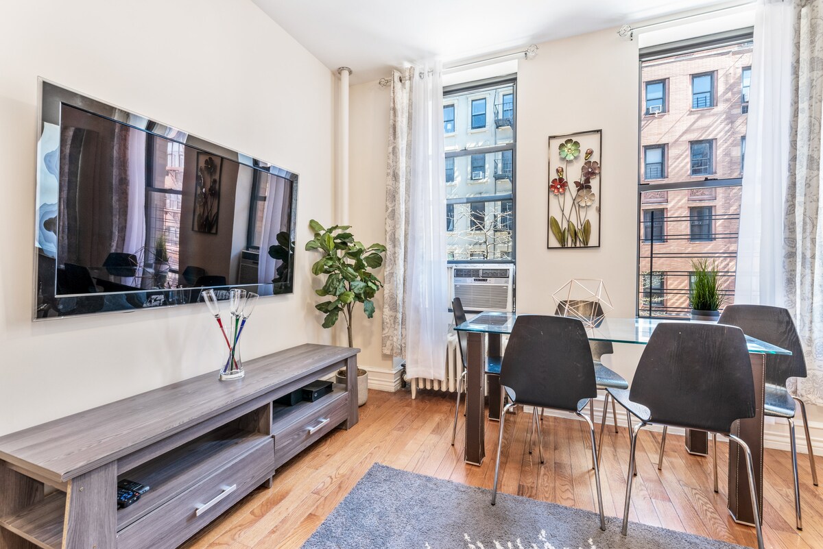 Dobro došli u naš udobni studio smještaj! Smješten u živopisnom okruženju, naš pažljivo uređeni prostor nudi udobnost i stil. Uživajte u mirnom noćnom spavanju u plišanom krevetu, opustite se u modernom dnevnom boravku i uživajte u jutarnjoj kafi na privatnom balkonu. Uz praktičan pristup lokalnim atrakcijama i sadržajima, naš studio je savršena baza za vaš boravak samo nekoliko minuta hoda od Central Parka i glavnih stanica podzemne željeznice. Rezervišite sada za nezaboravan doživljaj u srcu novog grada.
