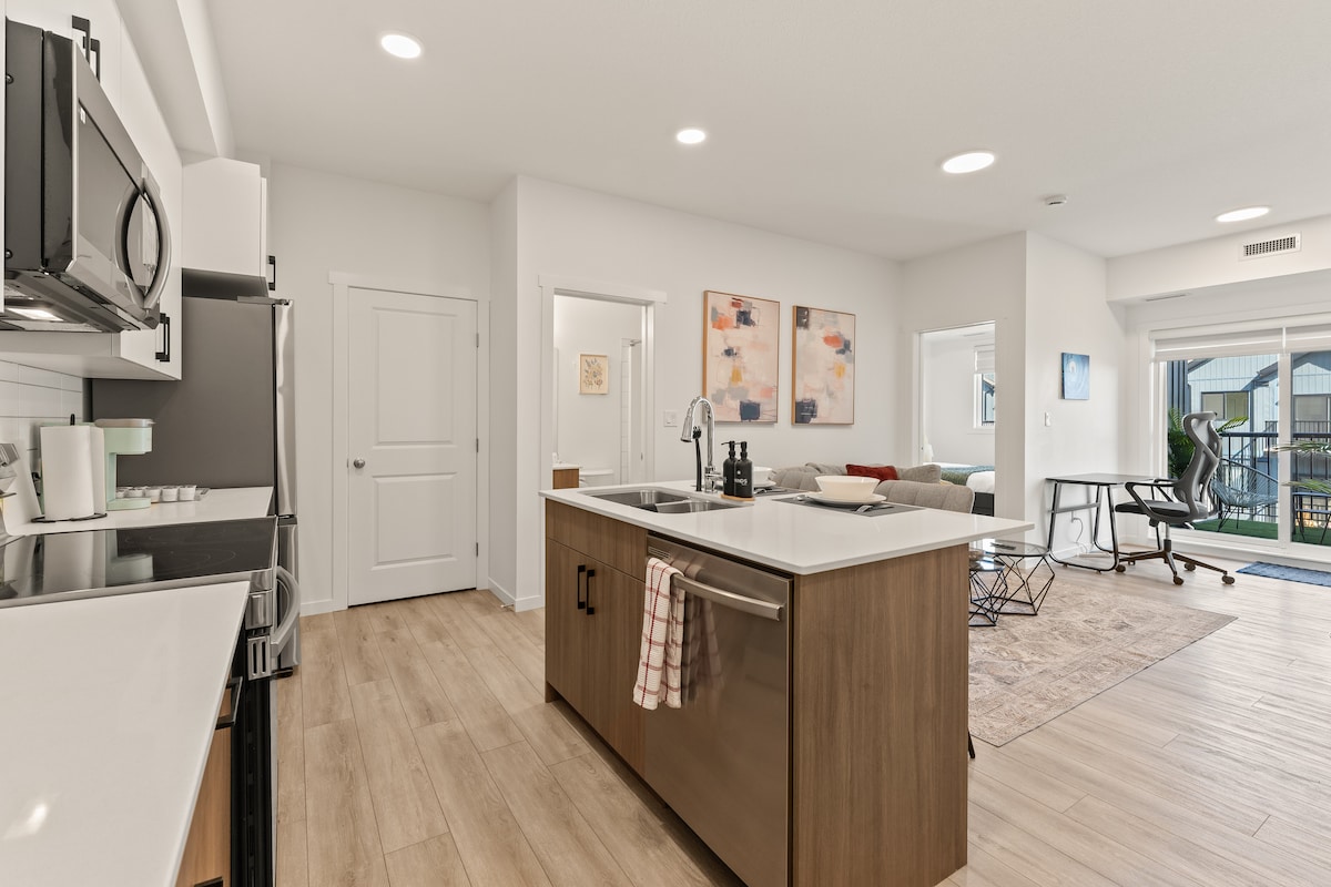 Ovaj potpuno novi kondominij je savršen odmor za vas i vašu grupu! S dvije udobne spavaće sobe ispunjene prirodnim svjetlom, osjećat ćete se opušteno i osvježeno. Potpuno opremljena kuhinja je savršena za kuhanje vaših omiljenih jela, a kupatilo poput spa centra nudi luksuzno utočište. Opustite se u privlačnom dnevnom boravku s udobnim kaučem i televizorom. Praktično smješten samo 13 minuta vožnje od trgovačkog centra West Edmonton, što vaš boravak čini udobnim i praktičnim!