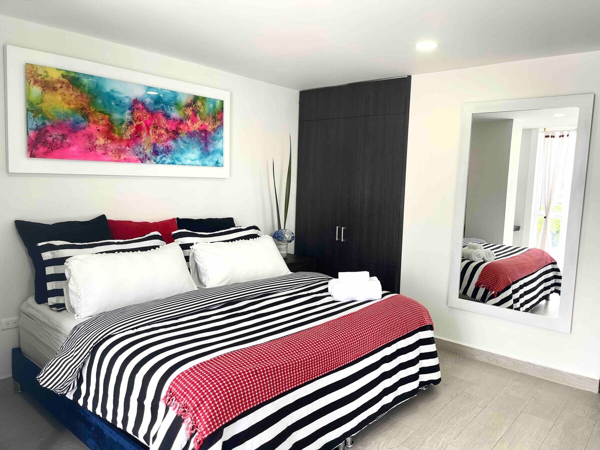 🌴 EXSTR APARTMAN • Granada 202 💃🏾🕺🏽 Ovaj prekrasni smještaji za kratkoročno iznajmljivanje nalaze se samo jedan blok od najbolje zone Rosa u Caliju - Granada. Dizajniran da maksimalno poveća udobnost vašeg boravka: nevjerovatne visine stropa, udoban namještaj, brz Wi-Fi, zavjese i zamračenje. Ovaj studio s jednim krevetom, jednim kupatilom i BALKONOM savršeno odgovara parovima, samostalnim putnicima i digitalnim nomadima. Ima toplu vodu u svim slavinama, klima-uređaj, 2 pametna televizora i visokokvalitetan bračni krevet.