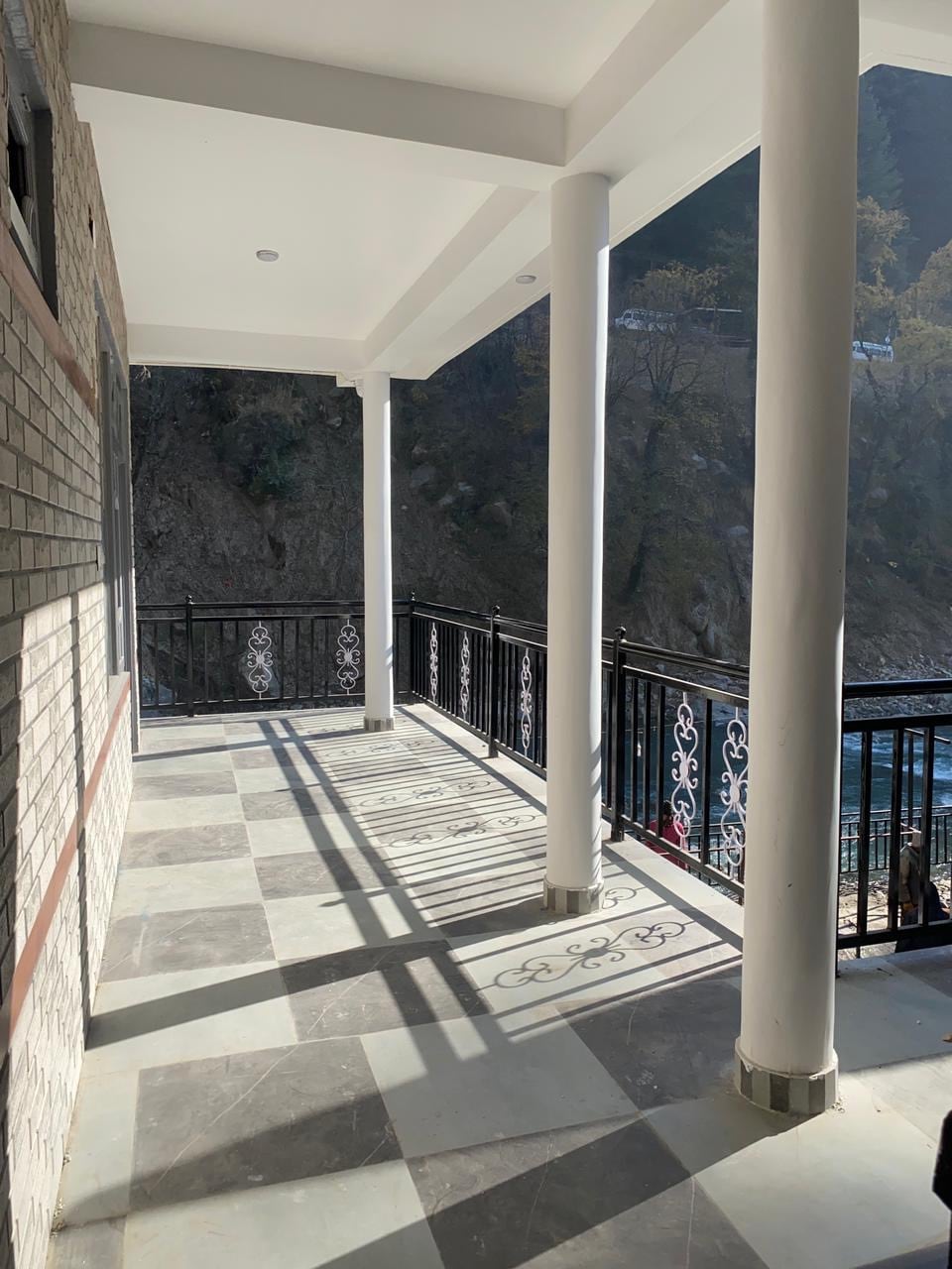 Naše Deluxe sobe imaju topli/hladni klima-uređaj, Wi-Fi, pametni TV od 43 inča s OTT kanalima, električno kuhalo za vodu, bračni krevet s madracima od 10 inča s električnim grijalicama za krevet, balkon okrenut prema rijeci i veličanstven pogled na planine. Vlastito kupatilo ima sve potrebne sadržaje kao što su čisti peškiri, šampon, gel za tuširanje, hidratantna krema, kompleti za zube, 24-satna zaliha tople i hladne vode. Veličina spavaće sobe je 11x12 stopa. Kupatilo je veličine 7x5 stopa. Veličina privatnog balkona je 8x4 stope.