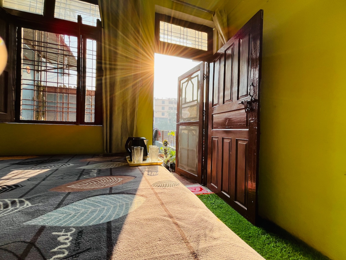 Intimnost okvira, izlazak sunca na balkonu, tihi kutci. Stvoreno za parove koji vole spora jutra. Spremni za rad, spremni za napajanje, telefon nije obavezan. Raya se osjeća ugodno i blisko. Balkon je ovdje glavni junak, čaj i prva svjetlost svakog dana. Jednostavan enterijer, toplo drvo i jasan pogled postavljaju ton. Wi-Fi je brz, napajanje je osigurano, a postoji i uredan radni prostor ako vam zatreba. Vrijeme vožnje od Delhija je devet do deset sati. Kathgodam je najbliža željeznička stanica. Besplatan parking. Najbolje za parove i godišnjice.