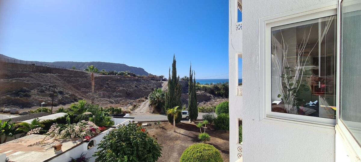 Vaš idealan boravak na jugu: renoviran, svijetao i opremljen stan. Prostran i hladan zbog svoje orijentacije, savršen za duže boravke. Terasa s pogledom na bazen, dva hotelska kreveta 1 x 2 m, kauč na razvlačenje, Wi-Fi, 2 pametna TV-a i kuhinja s pećnicom i mikrovalnom pećnicom. Kompleks s bazenom, vrtovima i besplatnim parkingom. Blizu Kasbah, Yumbo i Águila Roja, supermarketa i autobusa i taksija. Vrlo dobro povezano za kretanje bez automobila. Idealno za šetnju pored mora, kupanje i istraživanje ostrva.