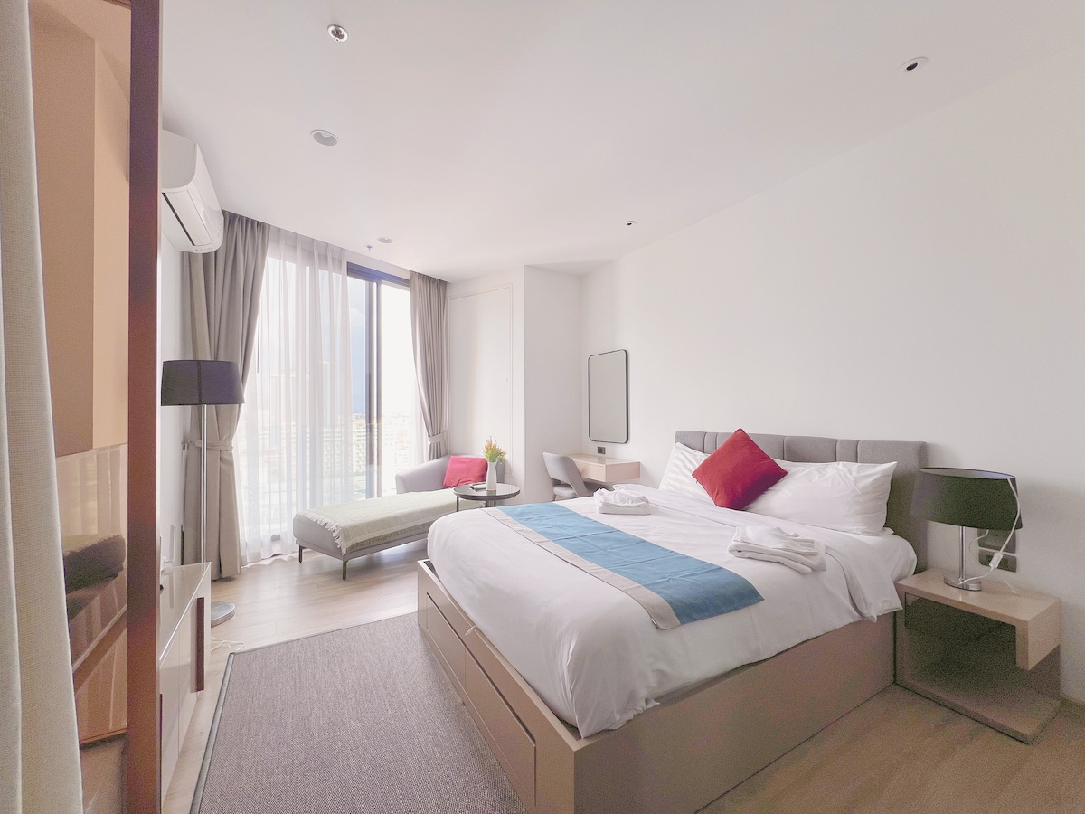 Naša soba se uzdiže na 22. sprat, uronjena u pogled na more na sjevernoj strani Pattaye. Puni jednosobni i jednodnevni boravak se mogu pohvaliti velikodušnim 31 m2, rijetkim rasporedom većim od standardne sobe. Zabavite se s Netflix premium pretplatom na 55-inčnom Smart HD TV-u. Potpuno opremljena kuhinja vas poziva na kulinarske avanture, uključujući mašinu za pranje veša i sušilicu za pojednostavljivanje veša. Raspakujte svoj dodatni prtljag s lakoćom i slobodnim prostorom u dnevnoj sobi. Ovo nije samo soba; to je priča koja čeka da se doživi.