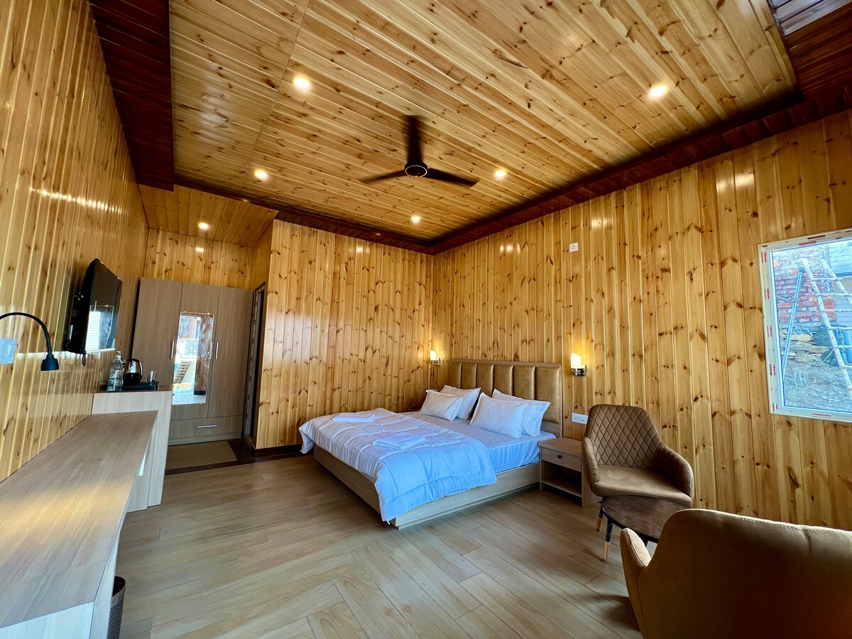 Udobne privatne sobe s kupatilom u boutique hotelu, s radnim prostorom, ogromnim vrtom i prostorom za sjedenje na otvorenom, rezervnim napajanjem i Wi-Fi mrežom, savršene za one koji se žele opustiti ili raditi na daljinu, dostupne cestom, sa svim glavnim turističkim atrakcijama samo u blizini. Uživajte u spektakularnom pogledu na mirne bujne zelene doline planinskog lanca Garhwal. Veličanstven pogled na zalazak sunca, samo 50 metara od odmarališta. Cijeli smještaj čuvaju hrastovi, koji se nalaze na 1700 metara nadmorske visine.