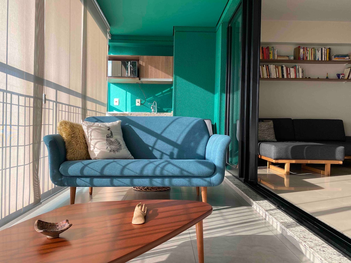 Smještaj sa svim sadržajima za kratak ili duži boravak, tih, kompletan i udoban, pogled na grad, otvoreni balkon na 21. spratu zgrade iz 1950-ih koja je dio arhitektonskog nasljeđa. Opremljena kuhinja, hidromasažna kada, klima uređaj za grijanje i hlađenje, topla voda, QLED TV od 50 inča, kompletna garderoba, odličan krevet, radni prostor sa Starlink internetom, Echo-dot Alexa, ovo je posebno mjesto za rad ili odmor, za obnavljanje energije i boravak u blizini svega u S. Paulu🥂