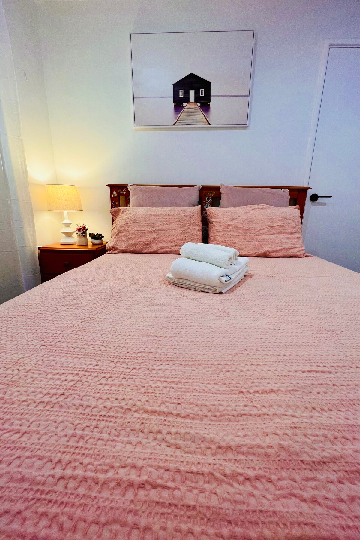 The “Pool House” is a 1-bedroom private detached unit at the rear of our property. Set in a quiet neighbourhood 10mins walk to the train station and close to Tafe, the Hospital & “The Forum”. 20mins walk to Silver Sands Beach. A 5min drive will get you to the holiday vibe at the renowned Mandurah foreshore offering boating, waterfront parks, cafes, restaurants and bars. Enjoy shared use of the pool in season. Off street parking with access to your accommodation through a secure side gate.