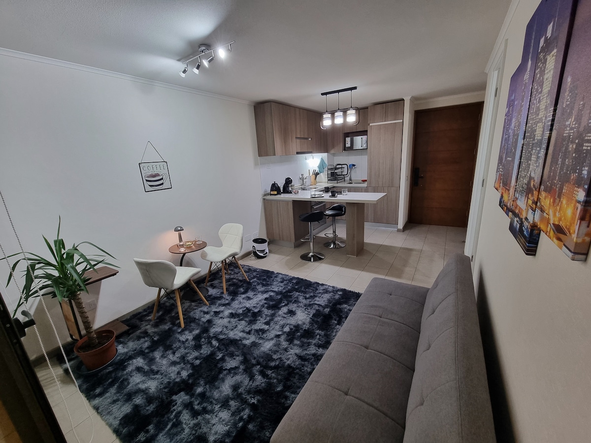 Disfruta de un departamento moderno, luminoso y cuidadosamente decorado. Totalmente equipado para estadías cómodas, cuenta con cama de dos plazas, sofá cama, cocina integrada, Smart TV, WiFi y balcón con vista despejada. Ubicado en zona segura y conectada de Santiago, ideal para descansar o trabajar. Espacio cálido, funcional y pensado en cada detalle para que te sientas como en casa. Excelente ubicación: cercano a Plaza Ñuñoa y Mall Portal Ñuñoa, centros deportivos. Con buena locomoción.
