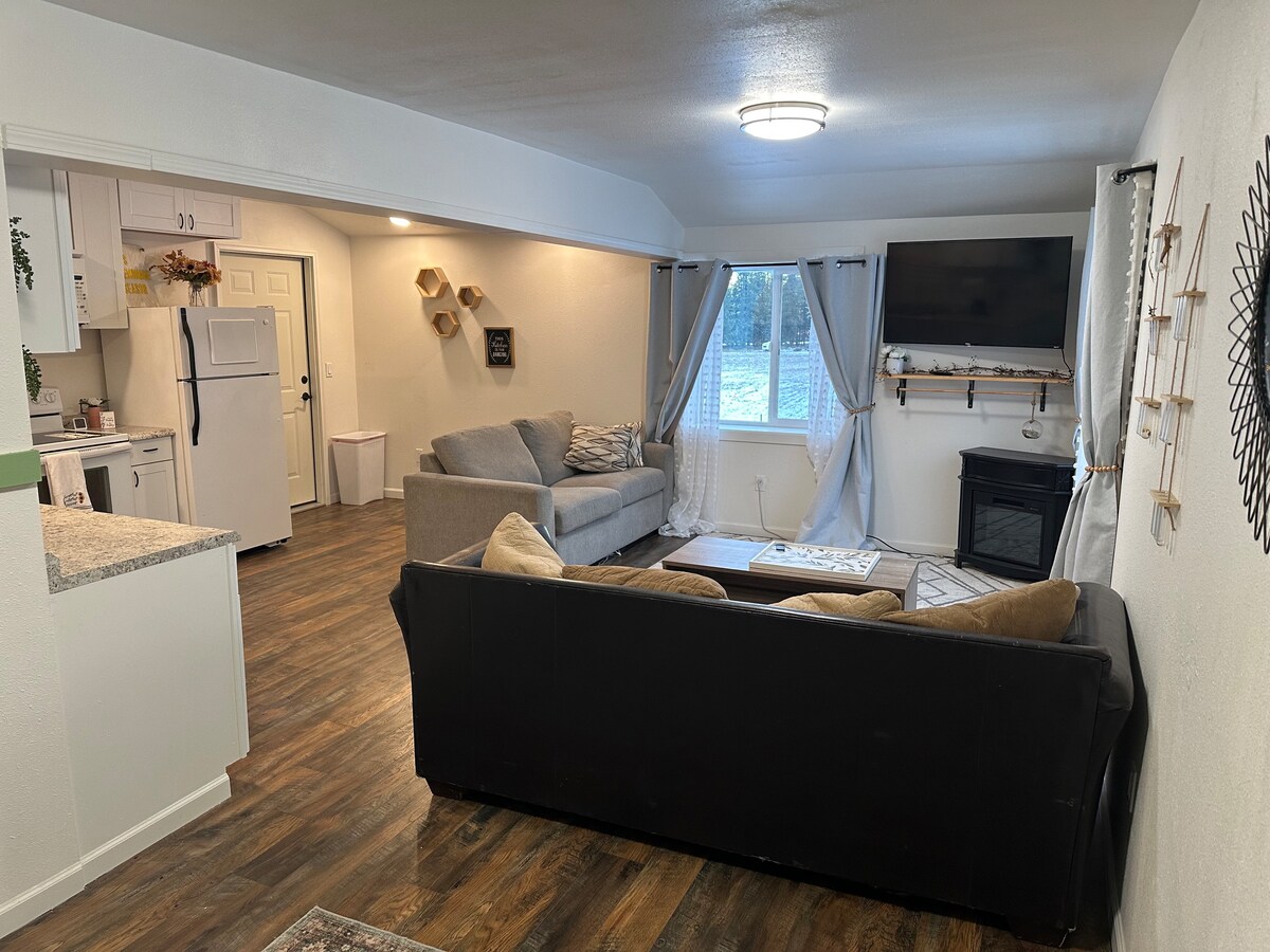 Ovaj dobro održavan mali odmor savršeno je mjesto za iskrcavanje iz grada i uživanje u ljepoti sjeveroistočnog Washingtona. Ova brvnara s dvije spavaće sobe i otvorenim dnevnim boravkom iznenađujuće je prostrana zbog svog otiska. Osim toga, tu su i kanu, kajaci, SUP-ovi i pedaline za vožnju do jezera, pristanište za električne brodove i staze za istraživanje u blizini! Kuhinja je opskrbljena, viseća ležaljka je obješena, travnjak je pokošen, a čeka vas nekoliko ličnih opcija za veslanje na jezeru!