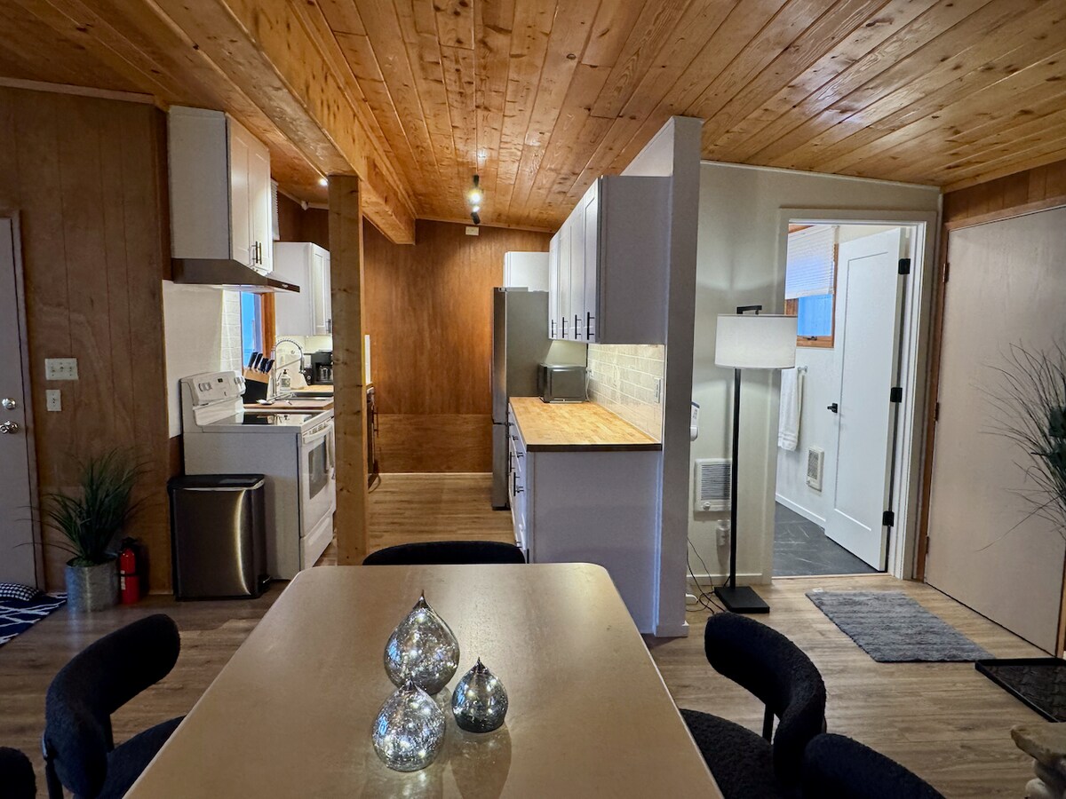 Naš apartman za goste ima moderan rustikalni ugođaj i može primiti 3 gosta. Postoji privatno kupatilo i zasebna soba s mikrovalnom pećnicom, pločom za kuhanje, aparatom za sendviče za doručak, mini frižiderom, aparatom za kafu Keurig i čajnikom. Tu su tanjiri, zdjele, pribor za jelo itd. i rustikalni trpezarijski stol od bačve za vino. Ormarići su opskrbljeni lokalnim čajem i kafom, s vrhnjem u frižideru i grickalicama. Postoji i roštilj koji gosti mogu koristiti