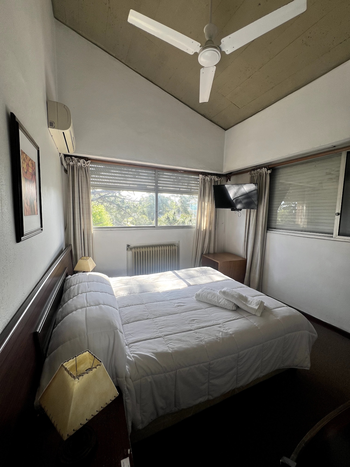 Ideal para familia. Cama matrimonial + cucheta+baño privado. Incluye desayuno en el periodo desde el 28/12 al 28 de febrero. Balcón, muy luminosa. Tv, frigobar, ventilador. Servicio limpieza y ropa blanca incluida.