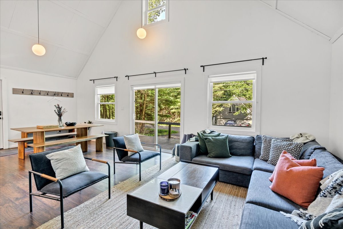 Newly renovated 4BR/3BA chalet on 10 private wooded acres in the Pocono Mountains. Sleeps up to 12 guests and is packed with amenities: a sauna, indoor fireplace, outdoor fire pit, two dedicated workstations with fast Wi-Fi, a yoga space, sunroom, and a fully stocked kitchen. Whether you’re seeking adventure or relaxation, you'll have quick access to the Pocono Mountains top attractions—whitewater rafting on the Lehigh River and skiing at Blue Mountain, Camelback, Jack Frost, or Bear Creek.