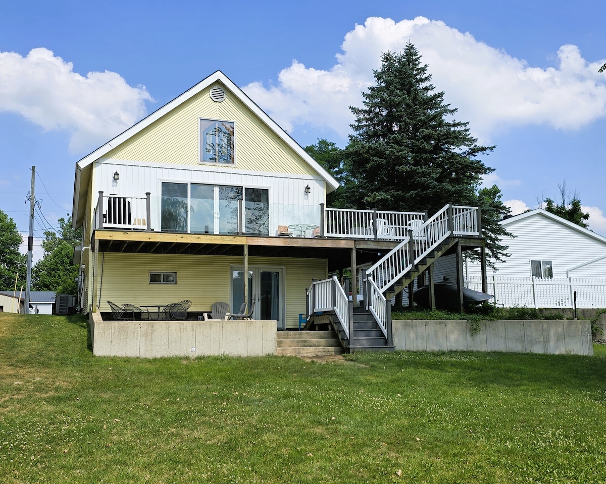 Polu-privatan i udoban stan u donjem spratu naše kuće na jezeru tokom cijele godine. Prostor uključuje potpuno opremljenu kuhinju, spavaću sobu s privatnim trodijelnim kupatilom i dnevnim boravkom/trpezarijom. Izađite iz stana na veliku terasu s pogledom na jezero od 340 hektara. Veslajte na brodu i kajaci uklj. Zimske aktivnosti uključuju blizinu skijališta Swiss Valley. (10 milja) 300 stopa hoda do večernje večere i koktela. 30 minuta do Kalamazooa i 50 minuta od South Benda, IN.