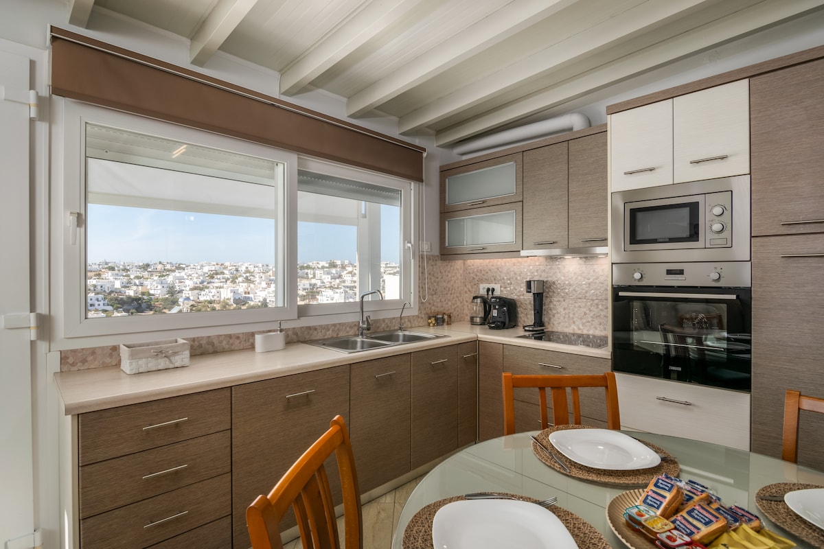 Naš stan je izgrađen poštujući kikladsku, tradicionalnu arhitekturu i slijedeći minimalnu estetiku. Apartman je pogodan za 3 do 4 osobe! Nalazimo se u selu Triovasalos, gdje su najbliže plaže Fyropotamos, Plathiena i Sarakiniko. Plaka, glavni grad ostrva, udaljen je samo 800 m. Pješice možete doći i do sela Tripiti, antičkog rimskog pozorišta, katakomba te ribarskih sela Klima i Mandrakia.