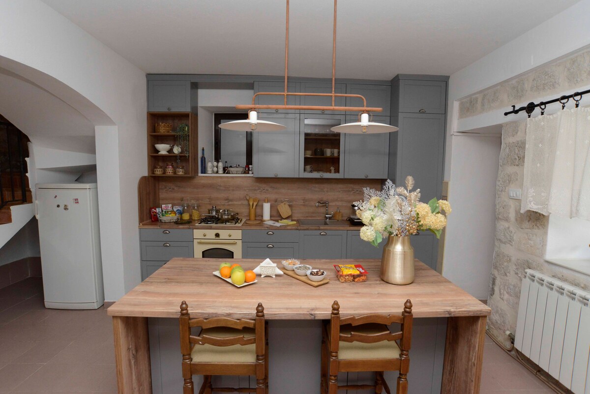 Ova stara kamena kuća uz obalu prvobitno je izgrađena u 19. vijeku i potpuno renovirana 2018. godine. Unutrašnjost predstavlja mješavinu tradicionalnog mediteranskog stila u kombinaciji s modernim dizajnom. Smještena u mirnom starom ribarskom selu Muo, naša kuća je savršena baza za istraživanje zaljeva. Stari grad Kotor udaljen je manje od 10 minuta vožnje, dok je aerodrom Tivat udaljen manje od 20 minuta. Kuća ima tri nivoa i svaki sprat ima nesmetan pogled na more.