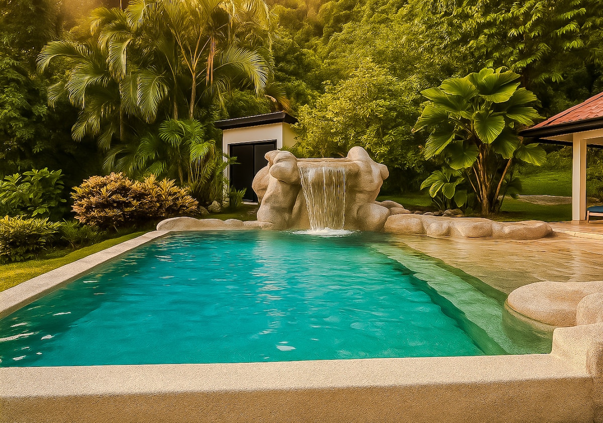 WELCOME to LA SOMBRA, where Costa Rican Jungle Tree House meets modern luxury sophistication. Minutes from the infamous Nauyaca Waterfall & a 18-minute drive down the mountain to Dominical Beach, enjoy outdoor living up in the gorgeous mountains of Santa Dios where the temps are "mas fresco"! La Sombra is a beautiful, secure 2.5-acre property where you'll be enchanted by beauty, nature, food, and adventure. We hope you’ll slow down and notice the magic outside, inside, and all around you.