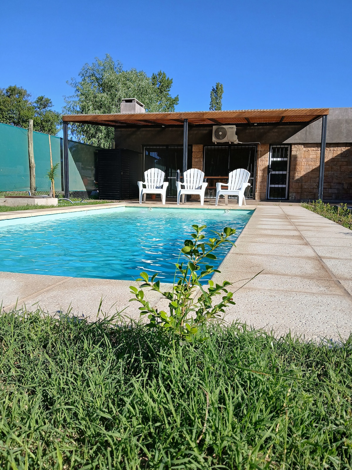 Disponibilidad inmediata. Casa rural privada con pileta, parrilla, hogar a leña, estacionamiento y Starlink. A solo 4 km del centro de Pergamino, rodeada de verde y silencio. Dormitorio principal cerrado y segundo espacio integrado con camas individuales. Baño interior y baño exterior junto a la pileta. Aire frío/calor, mosquiteros, lavadero, cocina equipada y living comedor amplio. Un lugar pensado para descansar, desconectar y disfrutar con total privacidad.