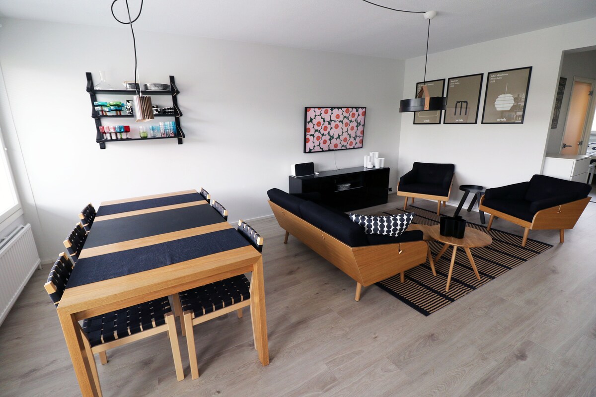 Uživajte u lakoći života u ovom mirnom stanu pored parka. Naš udoban stan je dobro opremljen i pogodan za parove, malu porodicu ili prijatelje. Do stana možete doći pješice za samo 15 minuta od centra Saloa i željezničke i autobuske stanice. Nedaleko od vas nalazi se mnoštvo restorana, zabavnih sadržaja, supermarketa i užurbana tržnica Salo. Za one koji putuju automobilom, postoje besplatna parking mjesta na obližnjim ulicama.