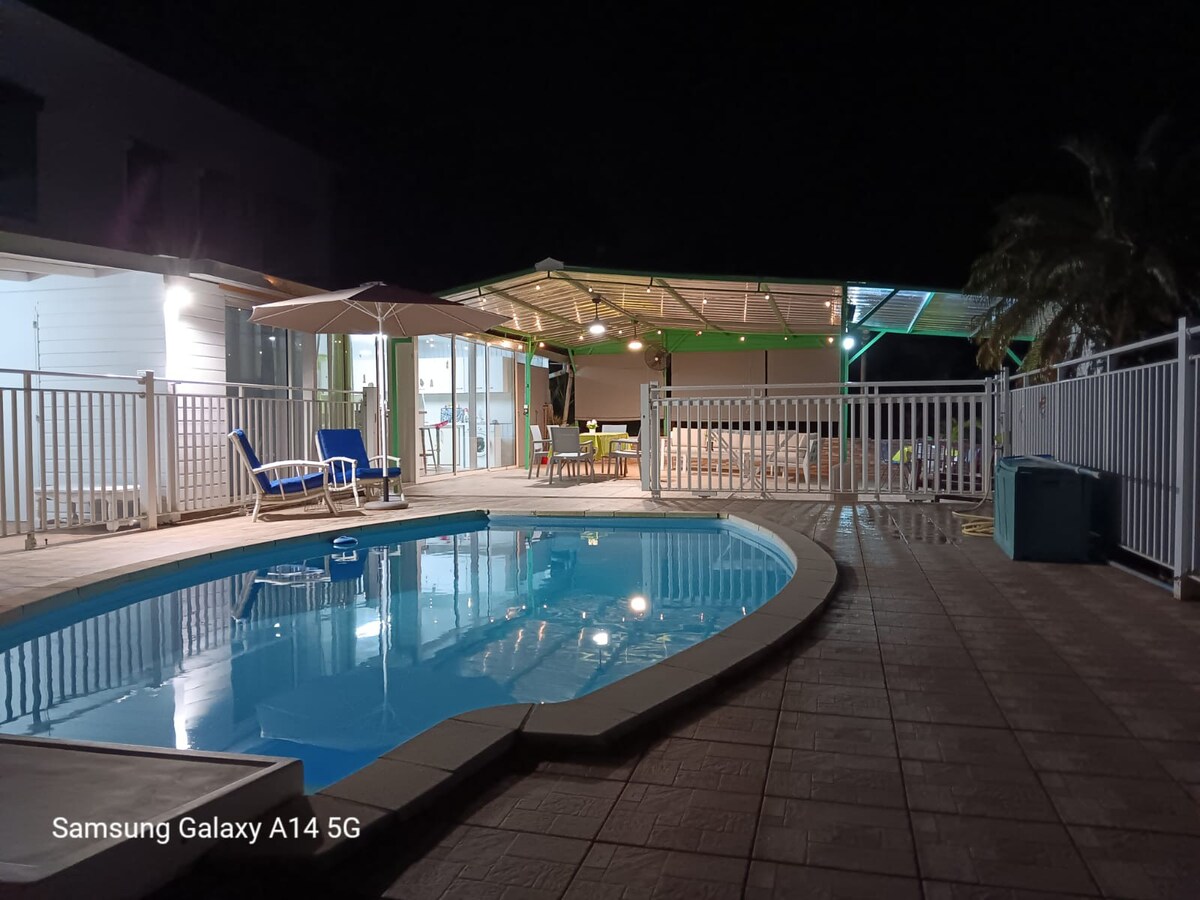 Želite li uživati u prekrasnom prostoru u tropskom okruženju, u srcu Guadeloupea? Smjestite se u vilu Tarare, kuću u kreolskom stilu okruženu prirodom! Ova vila nudi sve što vam je potrebno za nezaboravan i spokojan boravak: veliki životni prostor, potpuno opremljenu kuhinju, dvije velike spavaće sobe (mogućnost dodatnog spavanja), dvostruku terasu i bazen! Osim toga, udaljen je manje od 10 minuta od svih sadržaja!