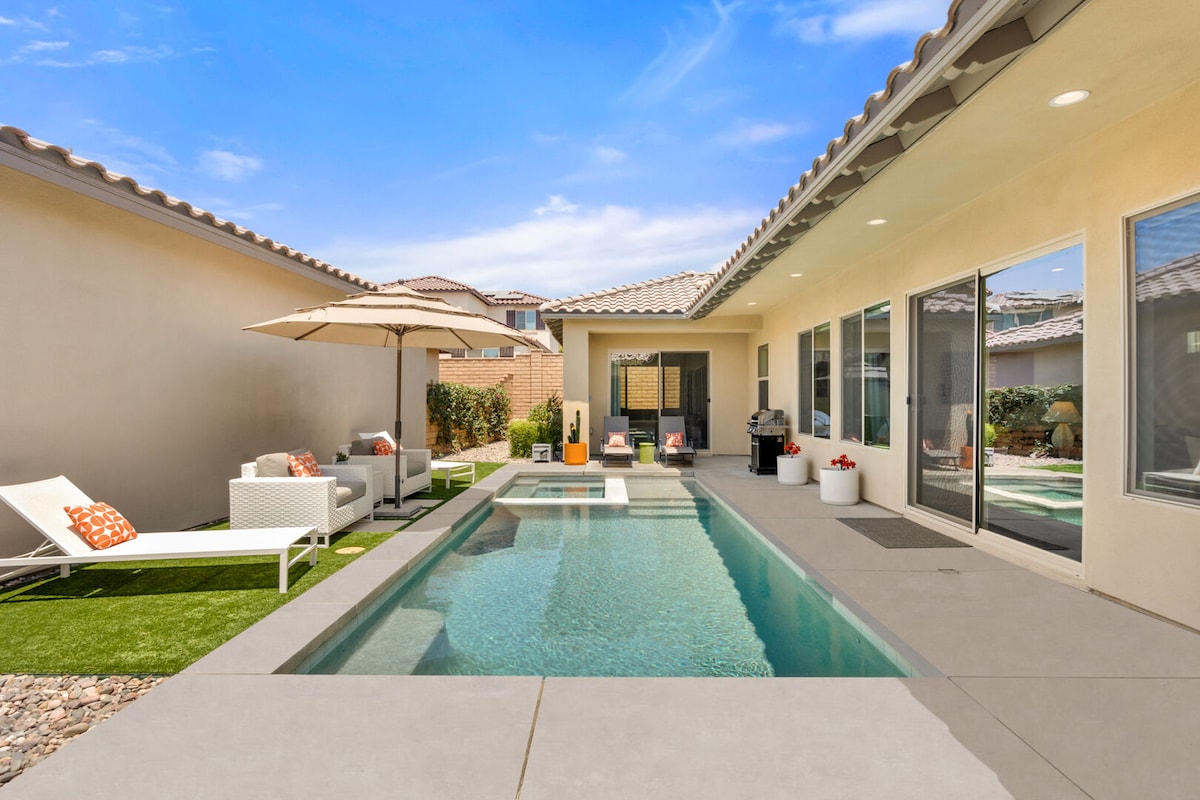 Ultimate vacation home rental experience at Signature PGA West. Nalazi se preko puta stadiona i manje od 4 milje od sajmišta muzičkog festivala Coachella. Ova prekrasna nekretnina je luksuzna za život. Klizni stakleni zid od poda do plafona zamagljuje linije između unutrašnjeg i spoljašnjeg života, u pravom pustinjskom stilu. Unutrašnjost dvorišta u stilu odmarališta, bazen s morskom vodom, hidromasažna kada, terasa za sunčanje s lounge barovima, sistem magle, ognjište, roštilj i punjač za električna vozila!