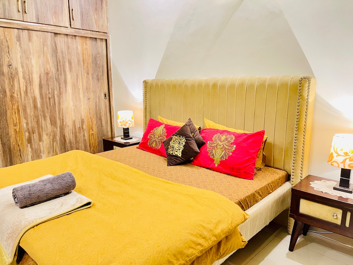 Dobro došli u Zlatne kolibe! Ja sam Haider, vaš domaćin za nezaboravan boravak. Smješten u Civic Centru Bahria Towna, naš jednosobni stan nudi modernu eleganciju i pažljivo osmišljen dizajn. Sa sadržajima kao što su klima uređaj, Wi-Fi i potpuno opremljena kuhinja, vaša udobnost nam je na prvom mjestu. Rezervišite sada za doživljaj bez stresa ispunjen smijehom, prijateljstvom, a možda čak i mrvicom nestašluka. Vidimo se uskoro!