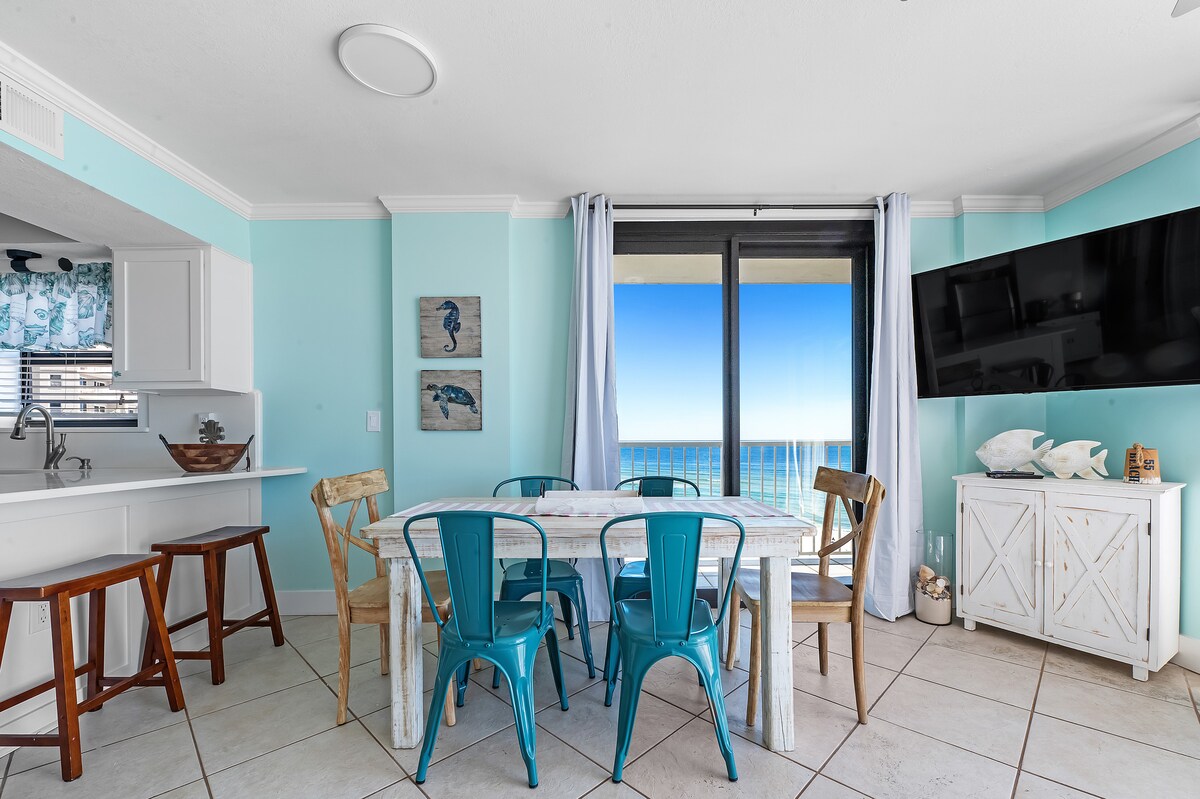 Unutrašnji i vanjski bazeni!! Gulf Front! - Kreveti od 1700 kvadratnih stopa za 10 gostiju. Na 14. spratu s predivnim pogledom na smaragdnozeleni Meksički zaljev, balkonom, 2 spavaće sobe s velikim bračnim krevetima i privatnim kupatilima, 2 kauča na razvlačenje i 2 kreveta za jednu osobu. Kuhinja je potpuno opremljena. Stol/bar za sjedenje tokom obroka. Mašina za pranje/sušenje veša u jedinici. Teretana, masažna kada, dječji jastučić za prskanje. Nudimo početne setove za papirne proizvode i deterdžente. Wi-Fi je obezbijeđen. Za boravke duže od 1 sedmice mogu se naplaćivati dodatne naknade za čišćenje.