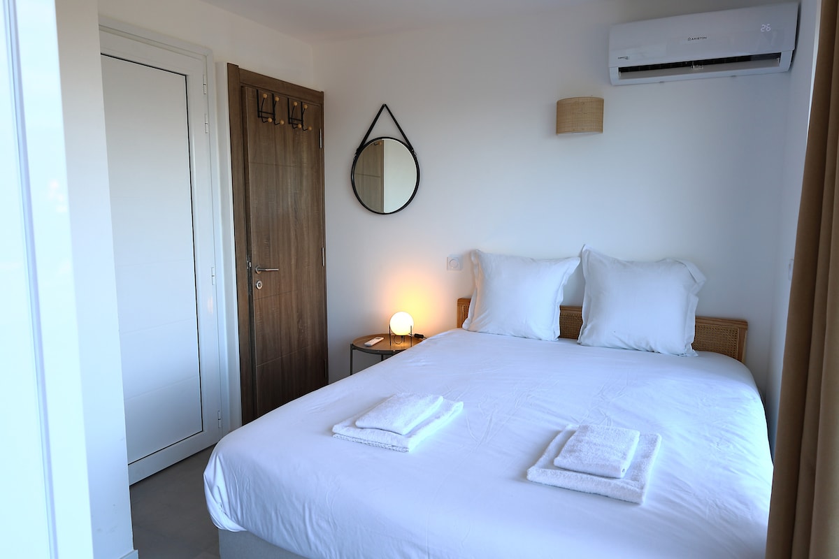 Uživajte u ovom prekrasnom renoviranom stanu u rezidenciji s beskonačnim bazenom, direktnim pristupom plaži. Idealan za 4 osobe, nudi svijetlu dnevnu sobu, potpuno opremljenu kuhinju, 2 spavaće sobe, uključujući brvnaru (krevet na sprat idealan za djecu) i natkrivenu terasu. Klima uređaj, Wi-Fi i parking su uključeni. Savršeno smješten u blizini prodavnica i aktivnosti, idealno je mjesto za opuštajući i nezaboravan odmor uz more.