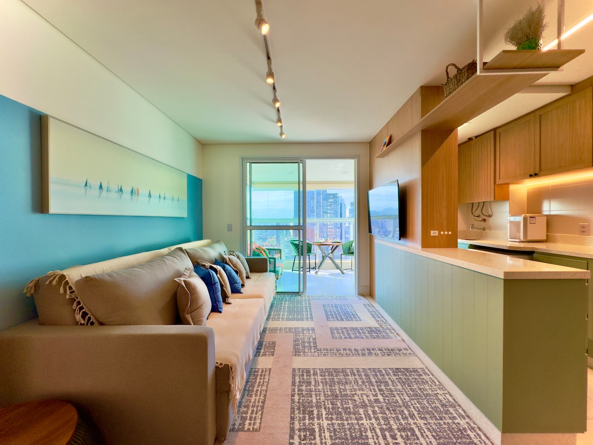 Prekrasan stan u pijesku s ekskluzivnim pristupom plaži. Nudi udobnost za najviše 5 osoba, potpuno opremljen modernim i jedinstvenim stilom. Odlično porodično okruženje s mnogo opcija za slobodno vrijeme: Beskonačni bazen i jacuzzi Mokri bazen Mokri bar Solarij Termalni bazen igra Salão Sauna Studio Fitness i pilates Sportski tereni za kino Espaço Kids i igralište Gurmanski prostor i soba za zabave Prostor za kućne ljubimce Pristup parku Beto Carrero za 15 minuta. Prihvata kućnog ljubimca